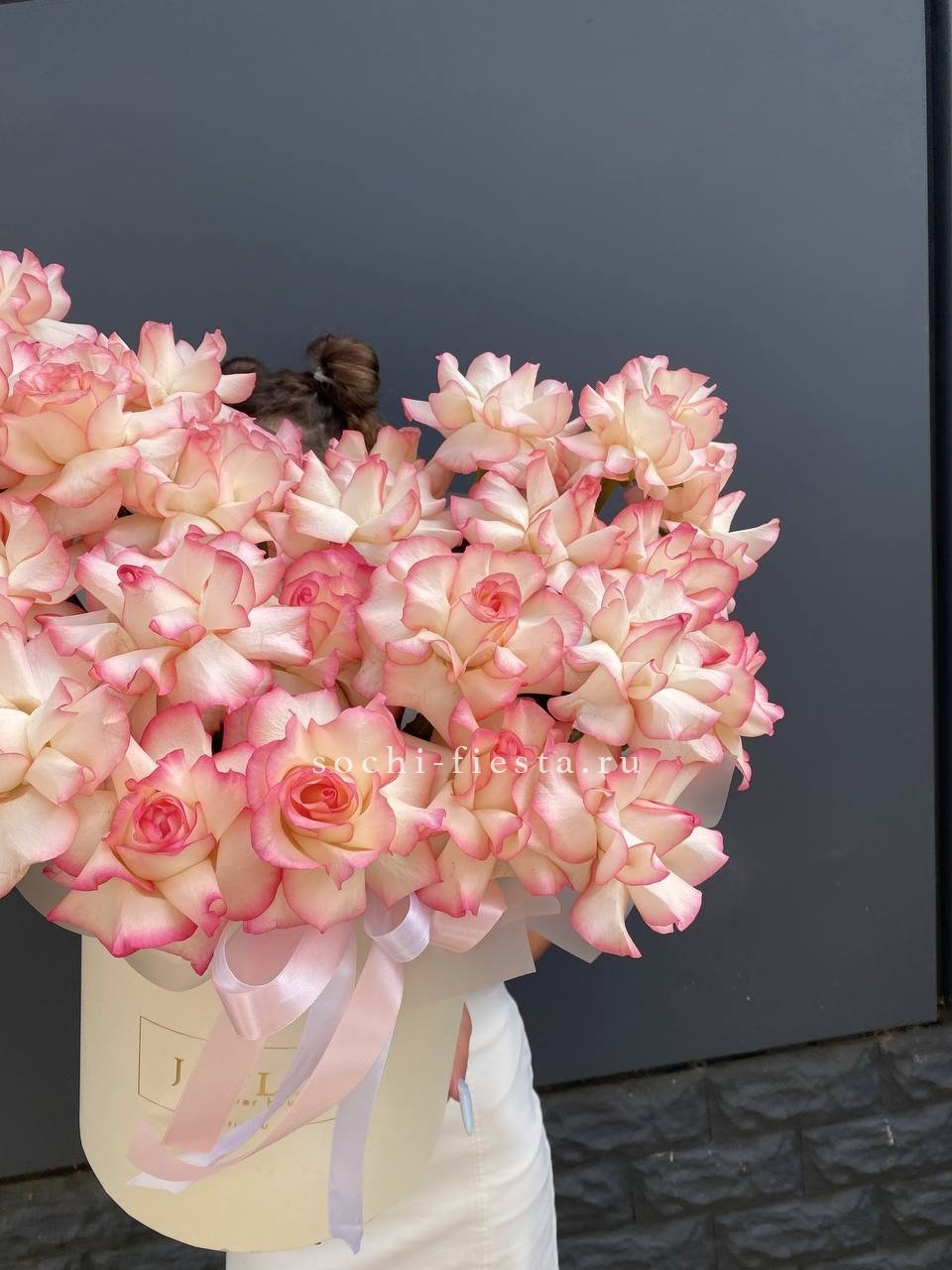 Для заказа товара "31 французская роза Джумилия в боксе" с доставкой в Нижнем Тагиле нажмите в корзину