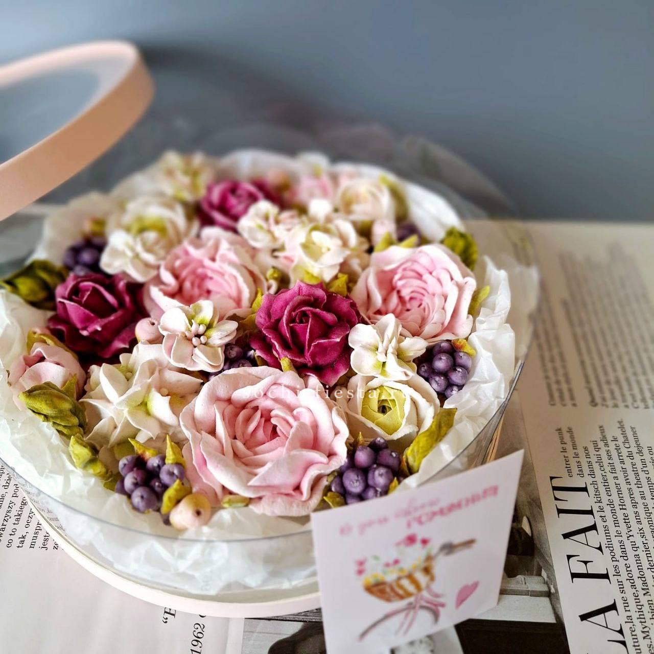 Цветочная композиция собрана с большим вкусом, взаимодействие с заказчиком с момента создания заказа и до получения цветов получателем, доставка к оговорённому времени. Всё супер!! ♥️Спасибо огромное ...