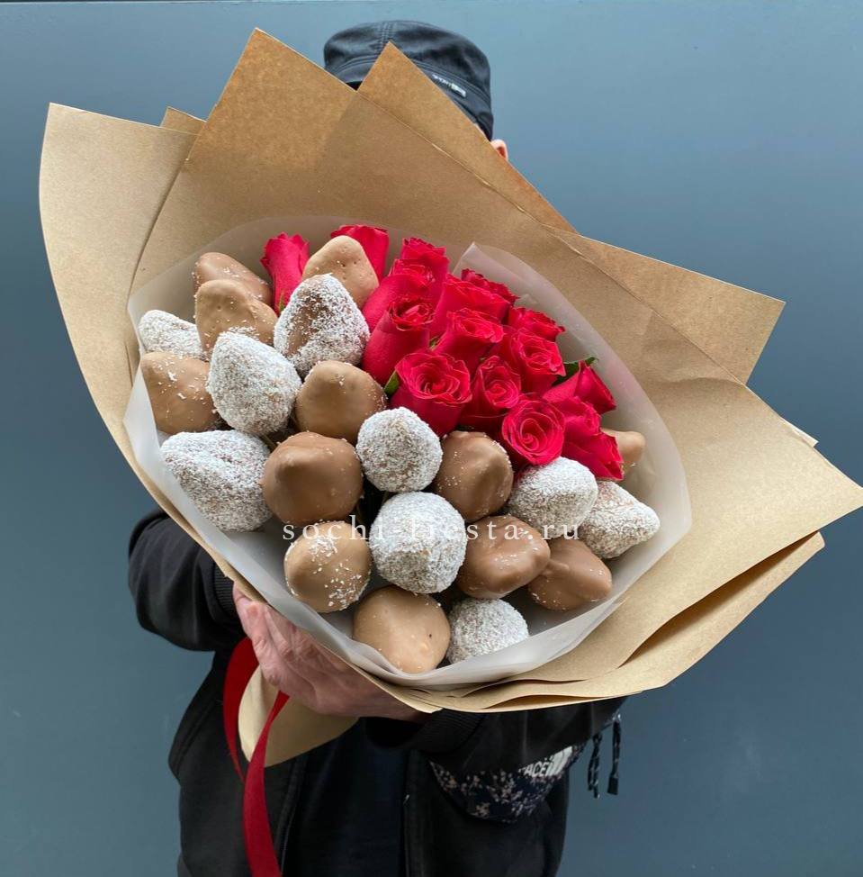 Розы и клубника в шоколаде Мерси