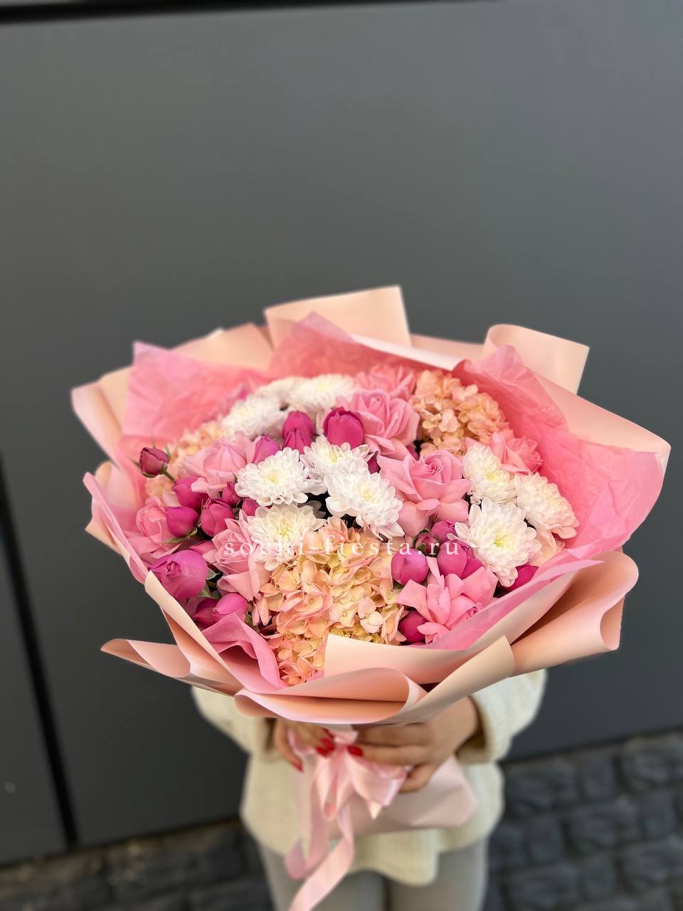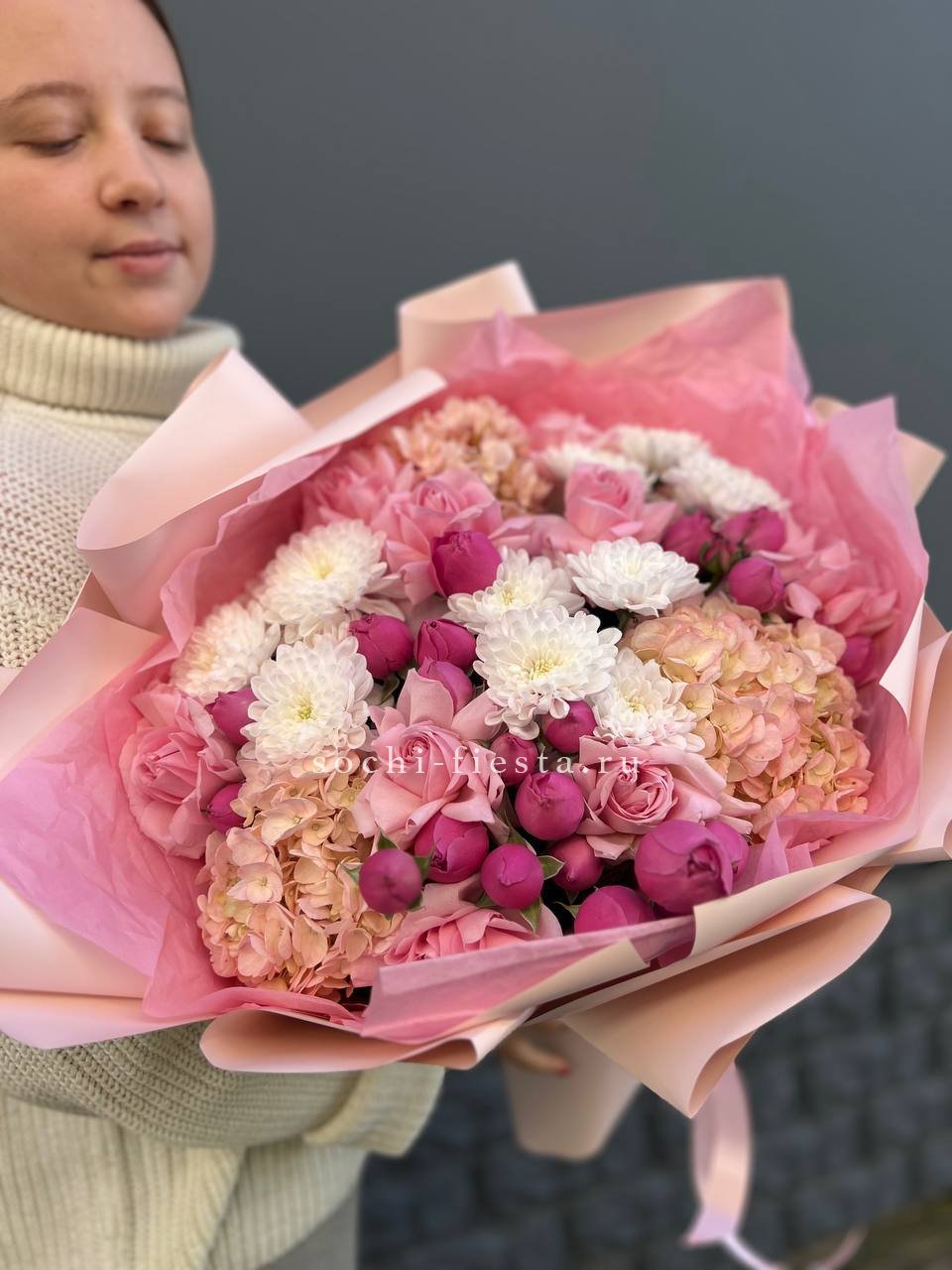 Букет из гортензий и розовых роз
