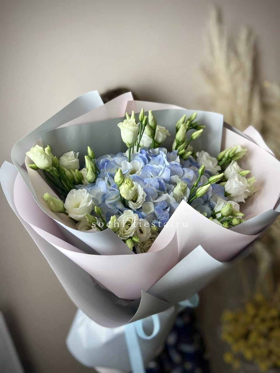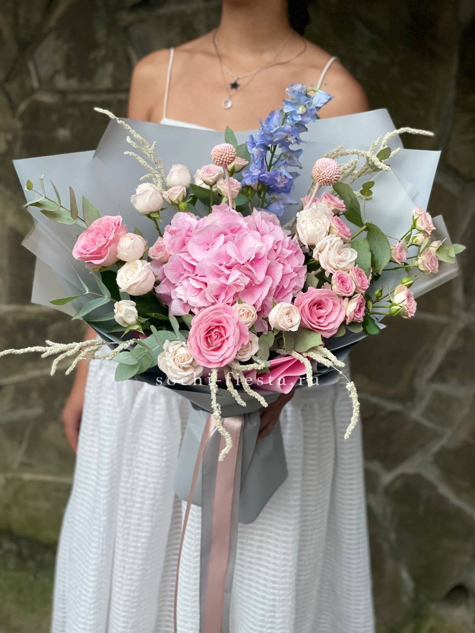 гортензия, хризантема, хамелациум, гербера, мисти баблс, диантус, пленка.
