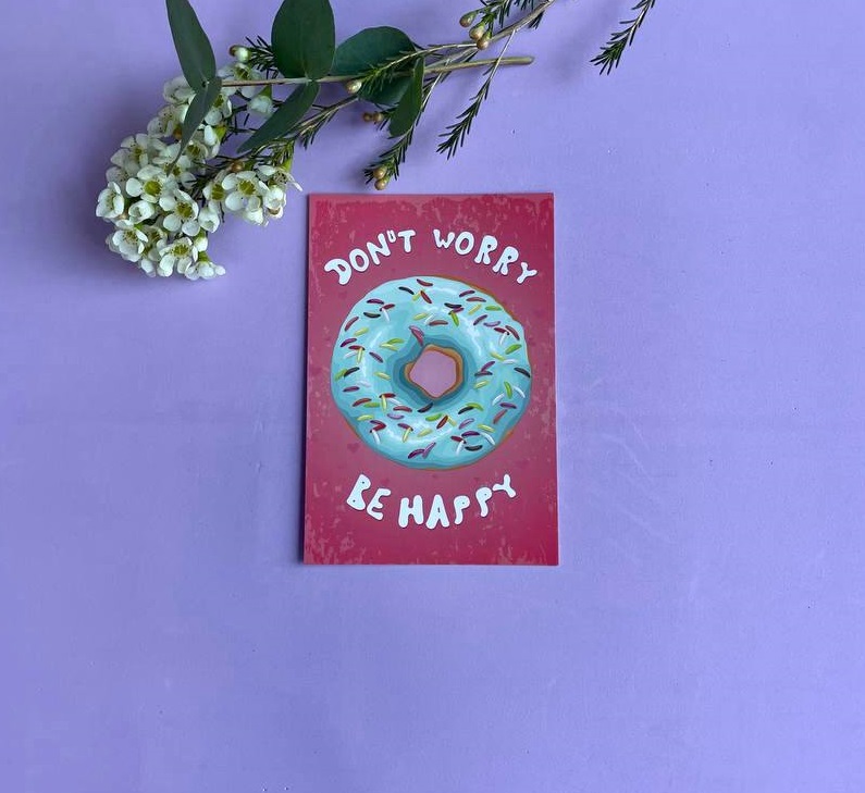Карточка с надписью Don't Worry дополнит ваши слова и передаст настроение поддержки. Внутри можно разместить личное послание до семи предложений. Простой способ сказать главное.