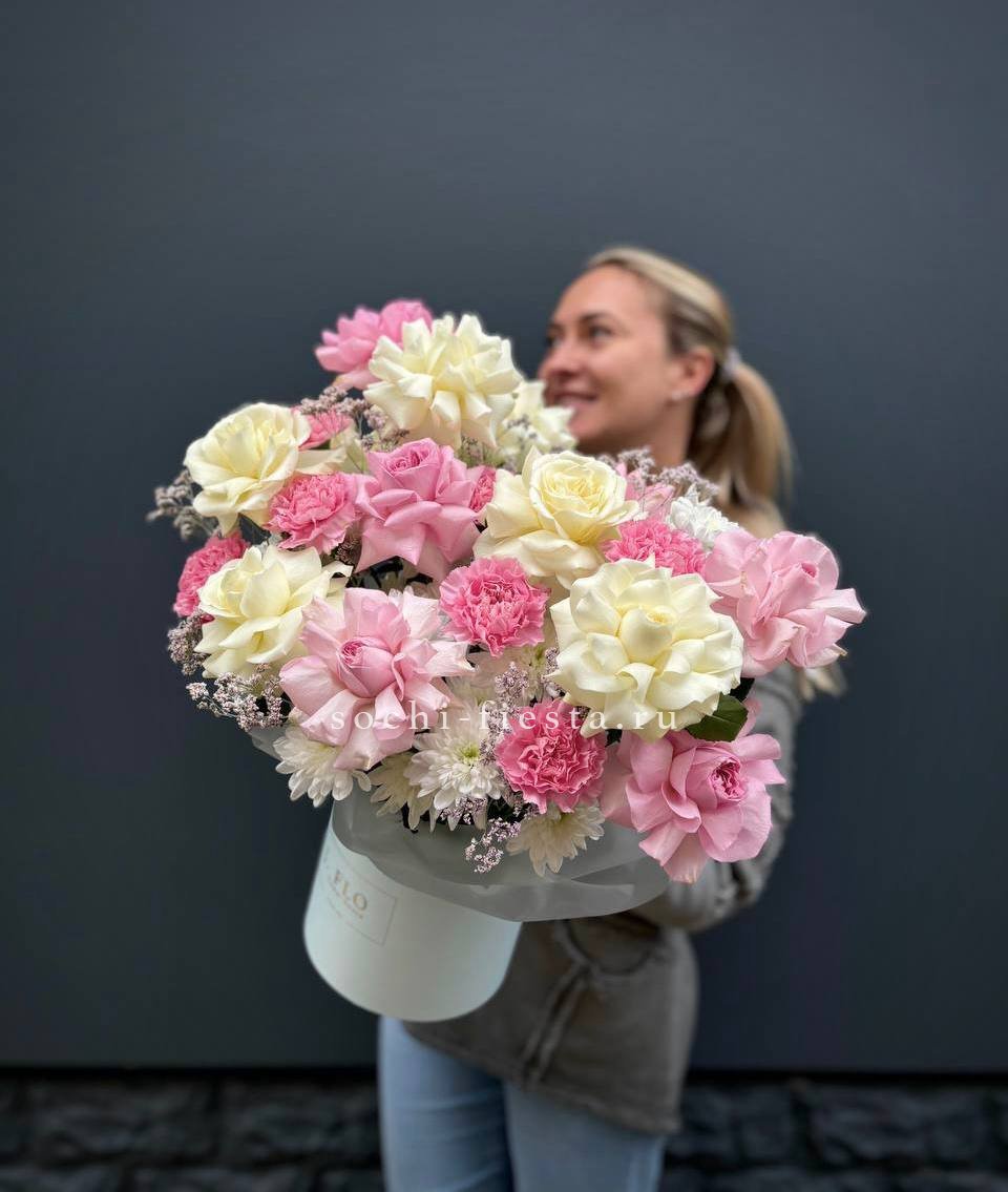 Коробка французских роз и диантусов "Бони"