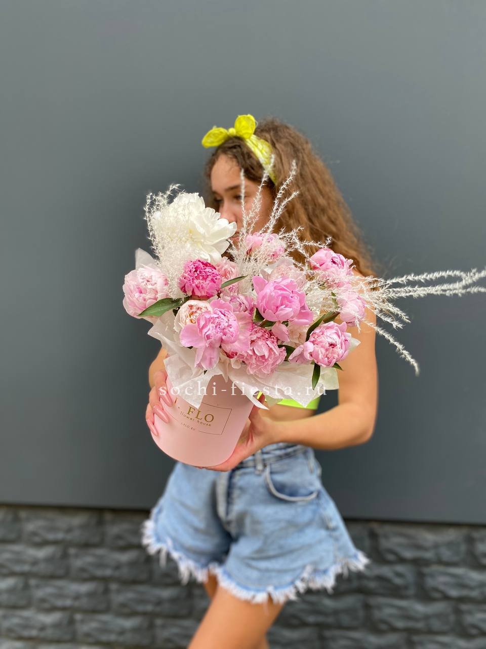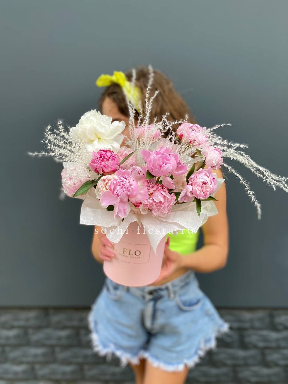 15 пионов, пампасная трава, цилиндр D13.