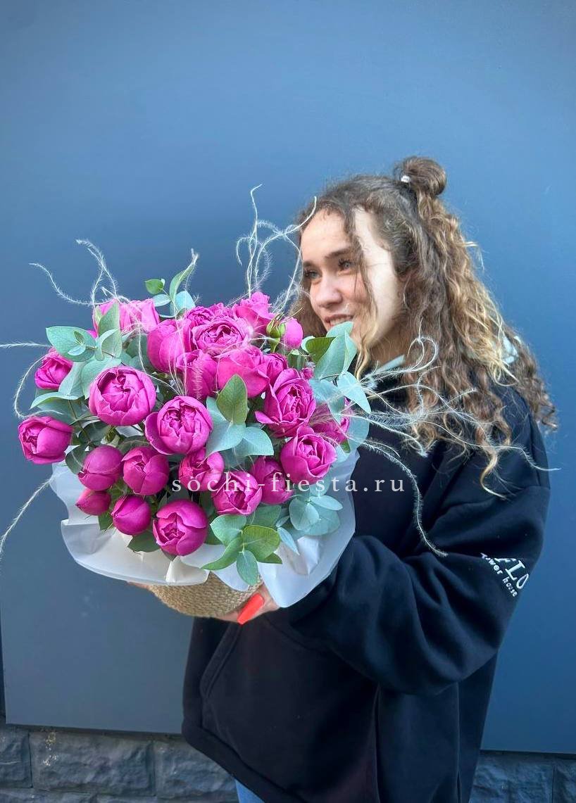 Для заказа товара "Пионовидные розы в джутовом кашпо " с доставкой в Нижнем Тагиле нажмите в корзину