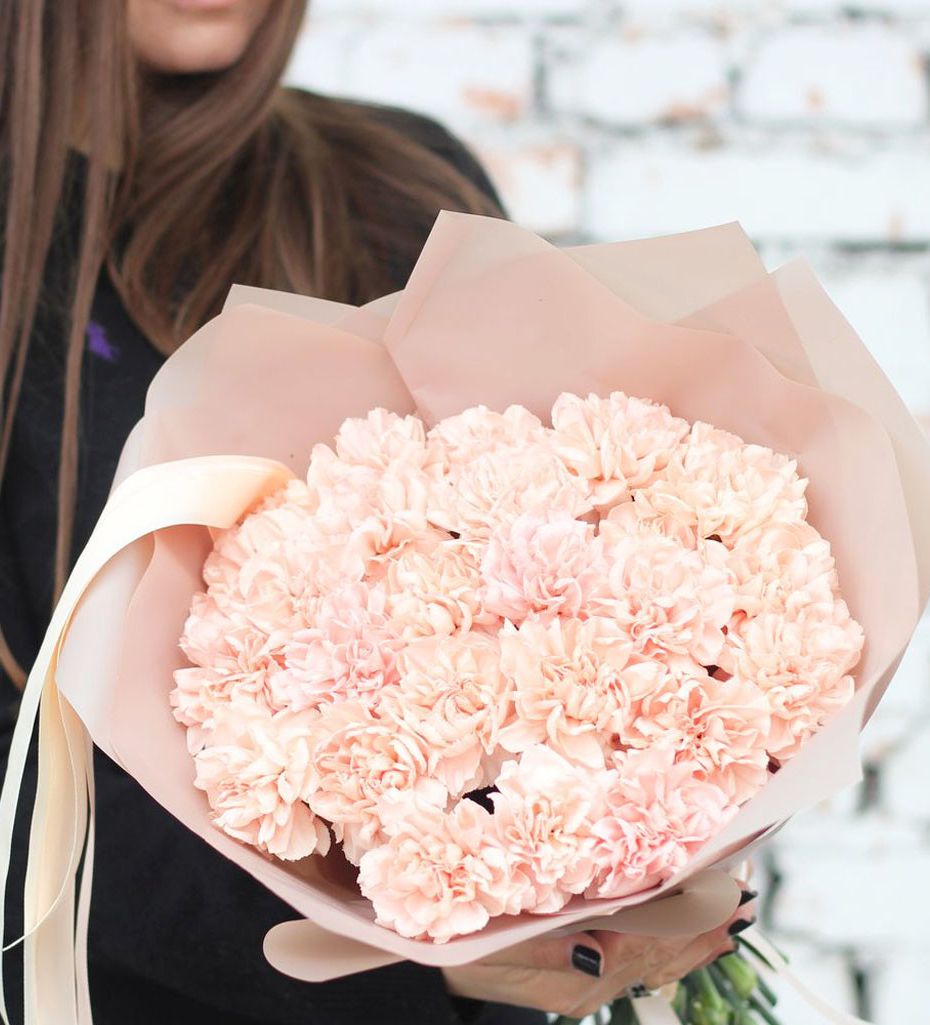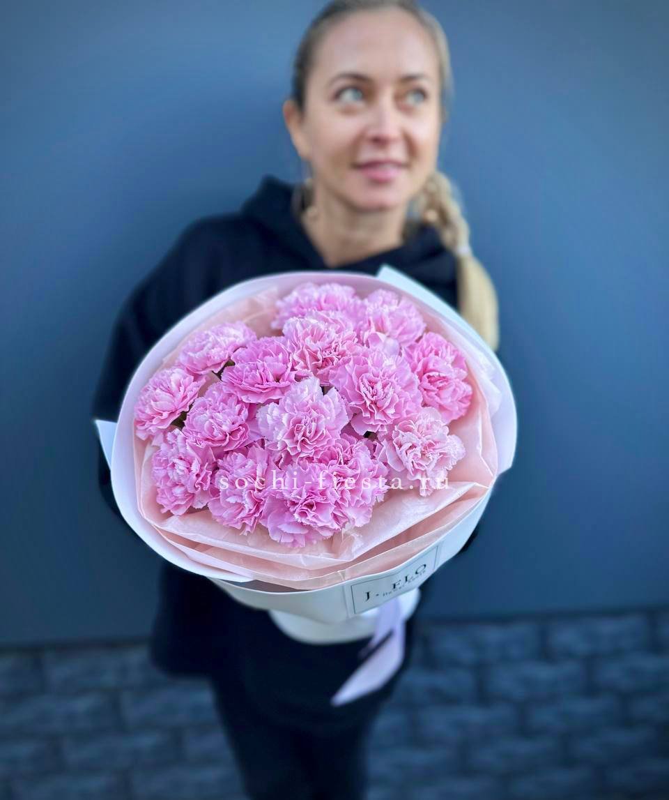 диантус - 21 шт., лента, крафт или дизайнерская пленка.