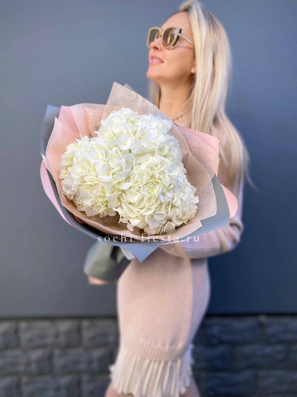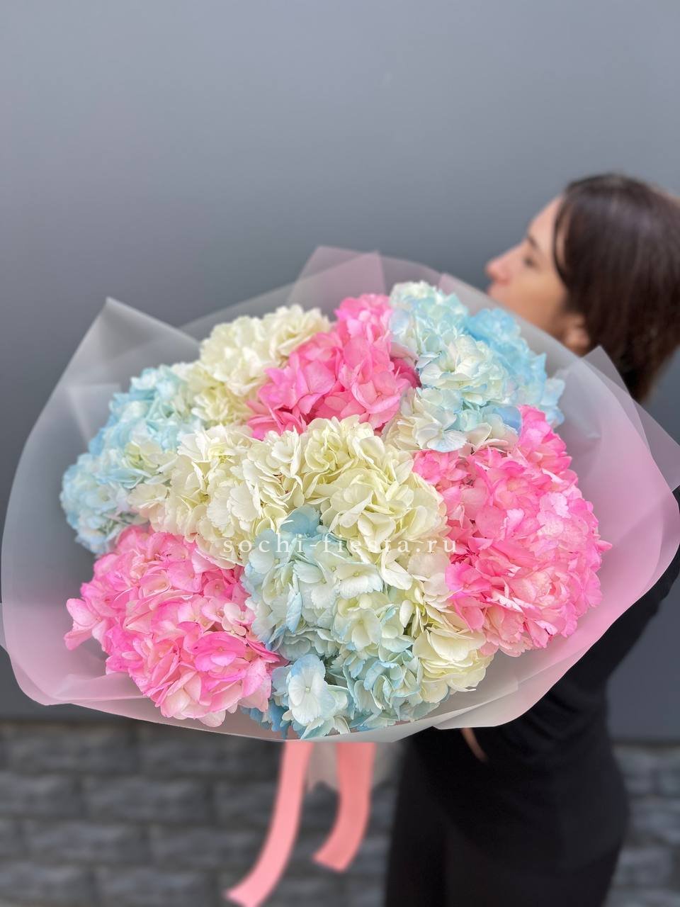 гортензия - 11 шт., лента, дизайнерская упаковка.
