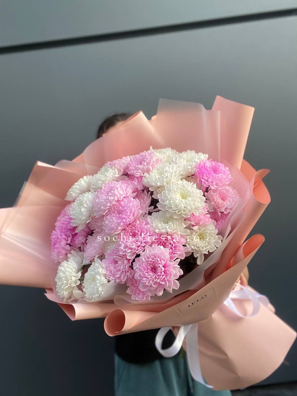 Букет бело-розовых хризантем