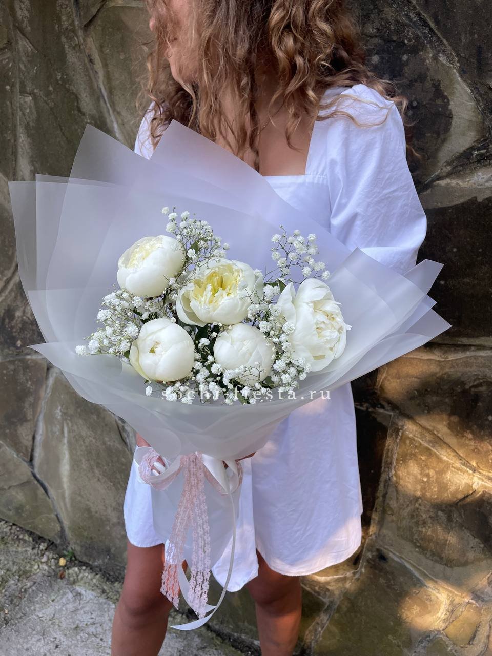 Букет белых пионов "Файв"