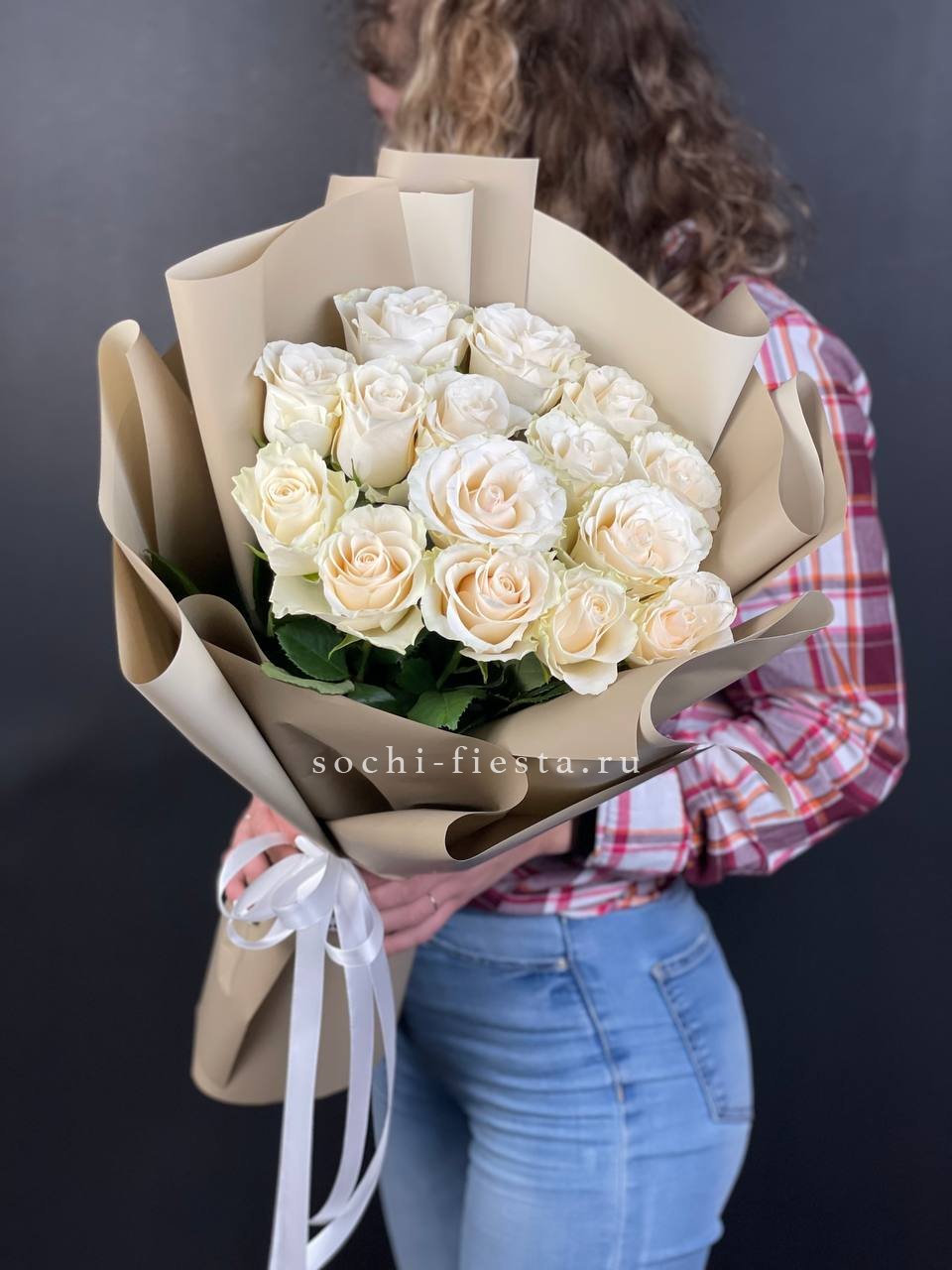 Пятнадцать белых роз в упаковке кофейного оттенка создают спокойное сочетание света и теплой глубины. Лаконичная форма букета удобна для вручения и дальнейшего размещения.