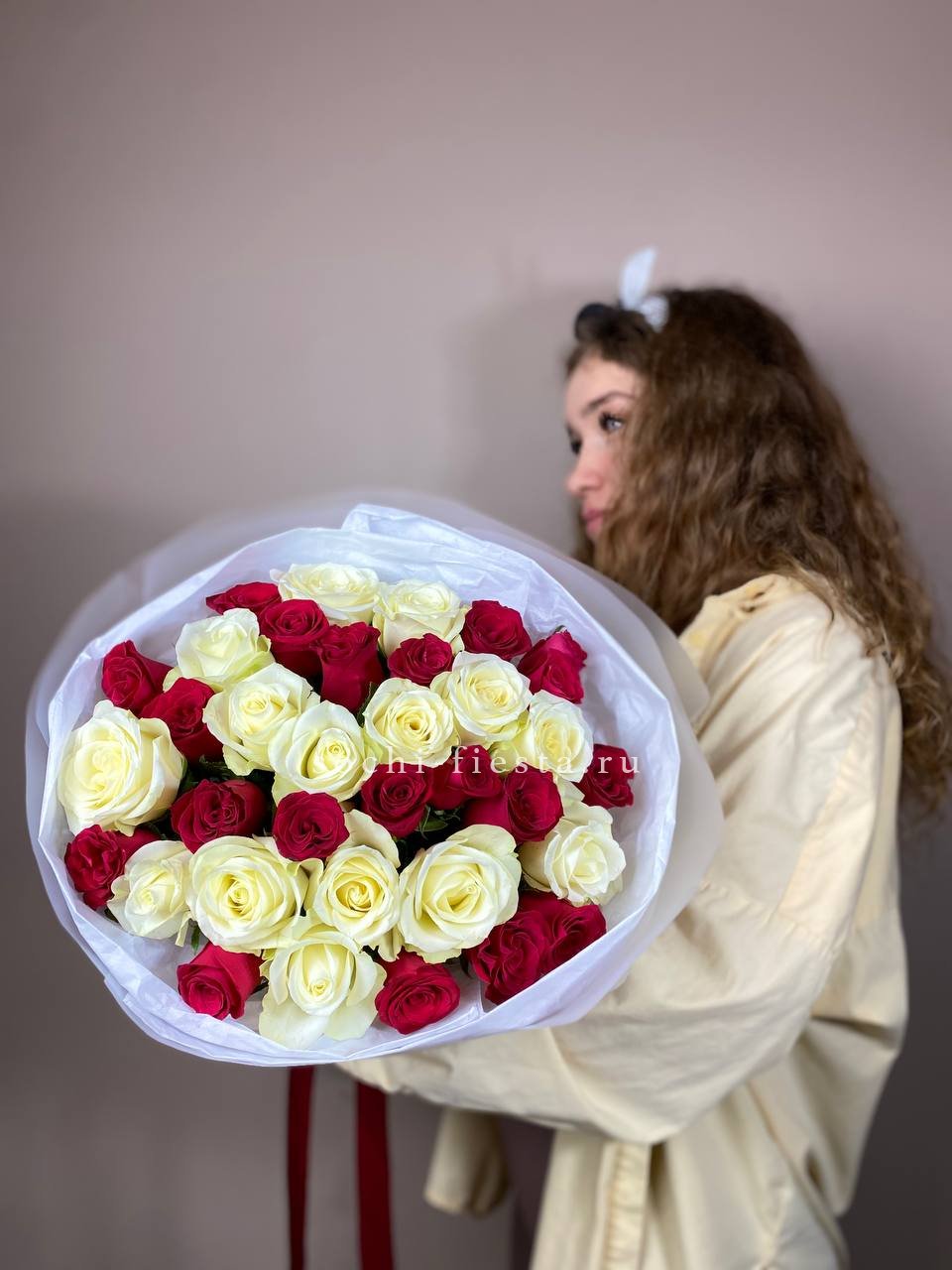 Для заказа товара "Букет из красных белых 35 роз" с доставкой в Нижнем Тагиле нажмите в корзину