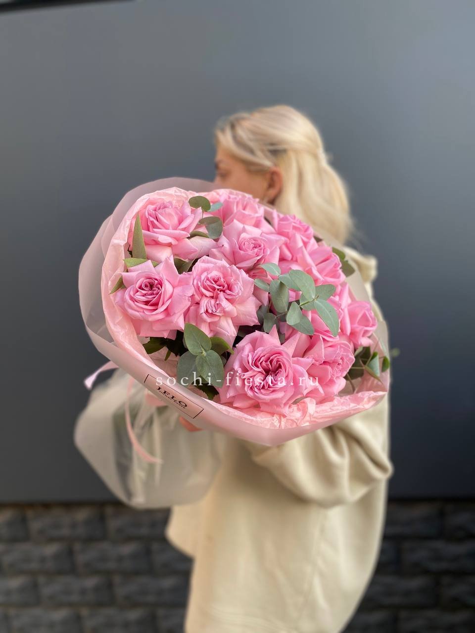 вывернутые розы - 11 шт., эвкалипт-2шт, лента, авторская упаковка.