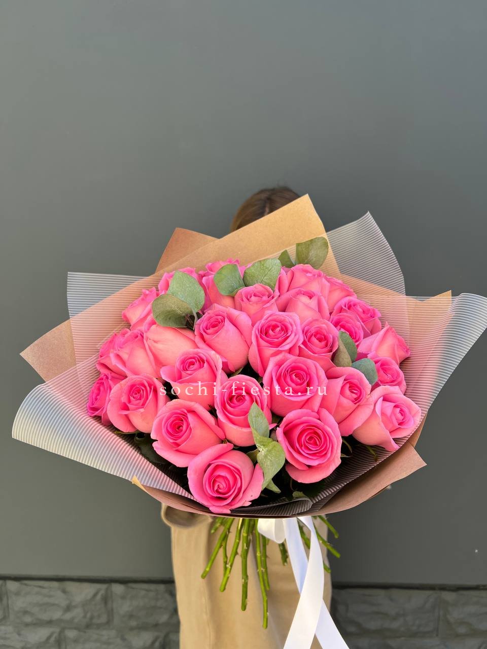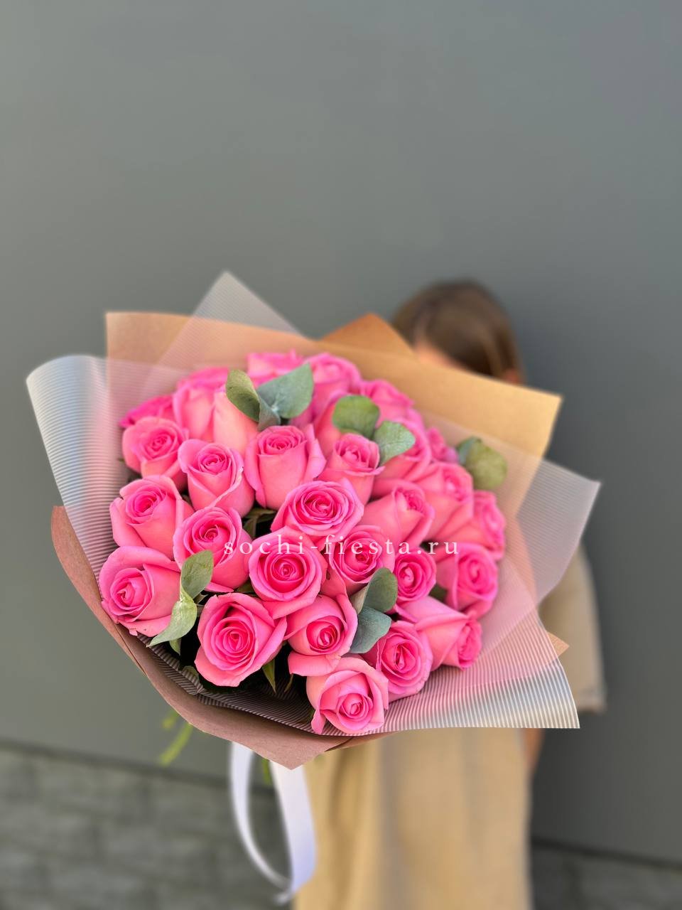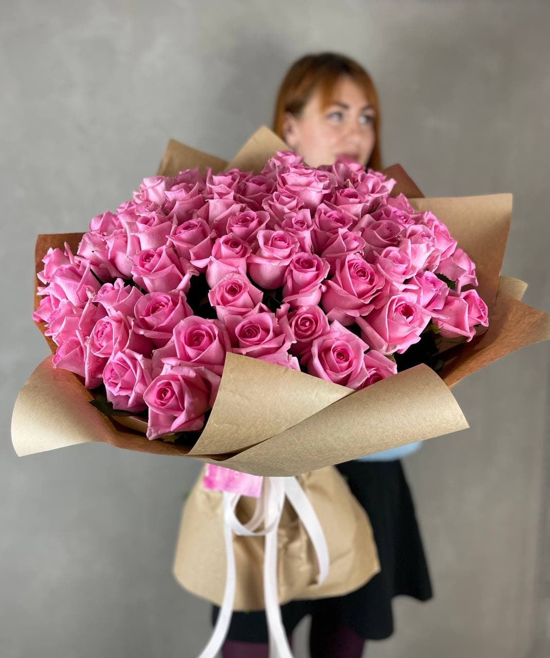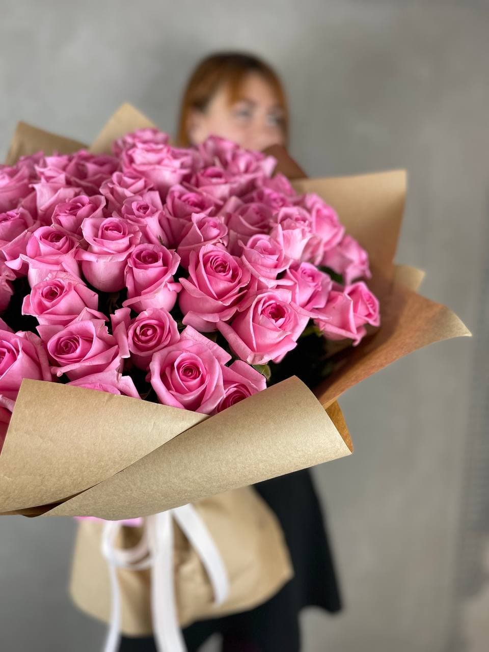 розовые розы - количество на выбор, авторская упаковка, лента.