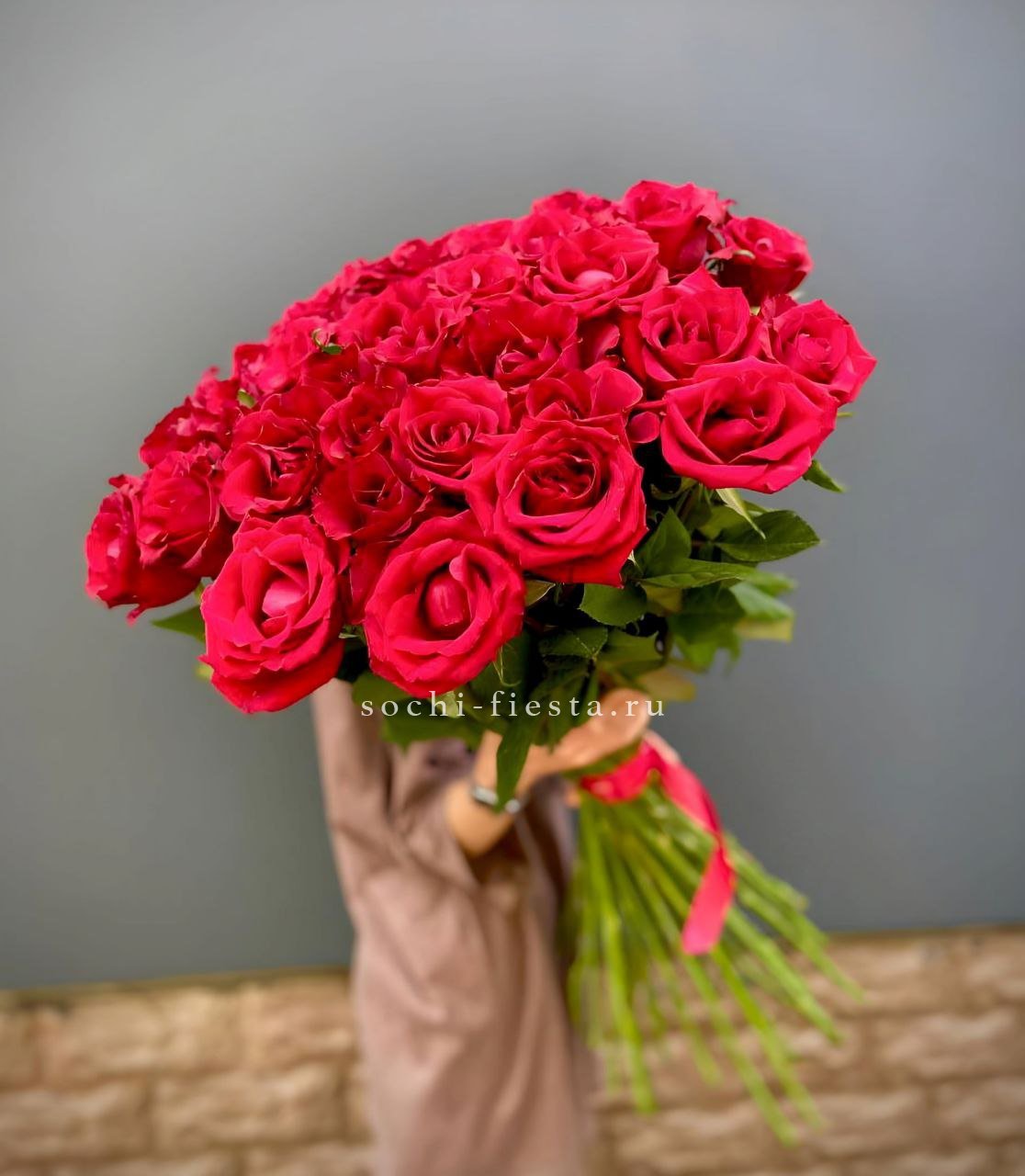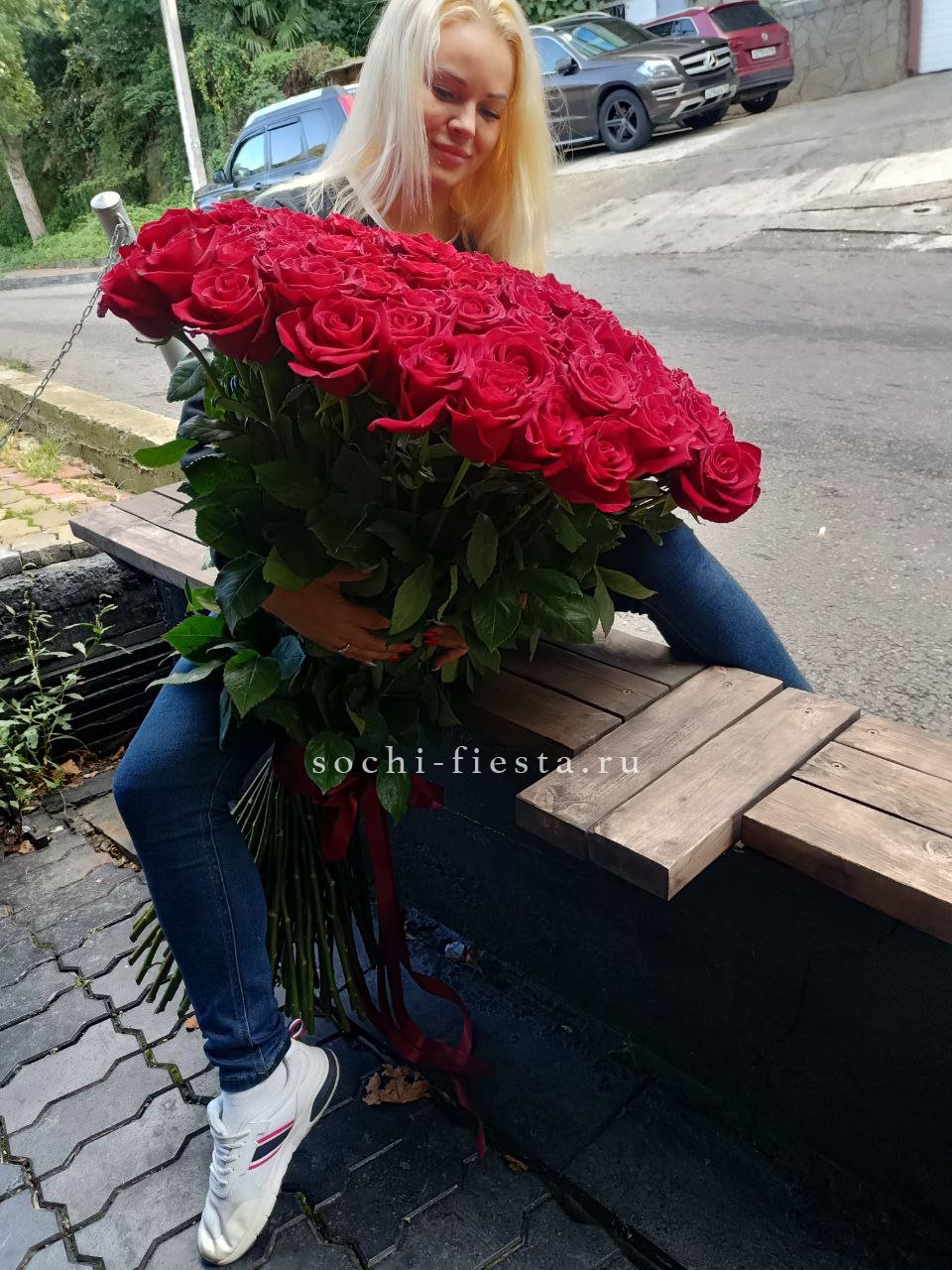 роза красная 70см - 15 шт., лента. Возможна упаковка на ваш выбор.