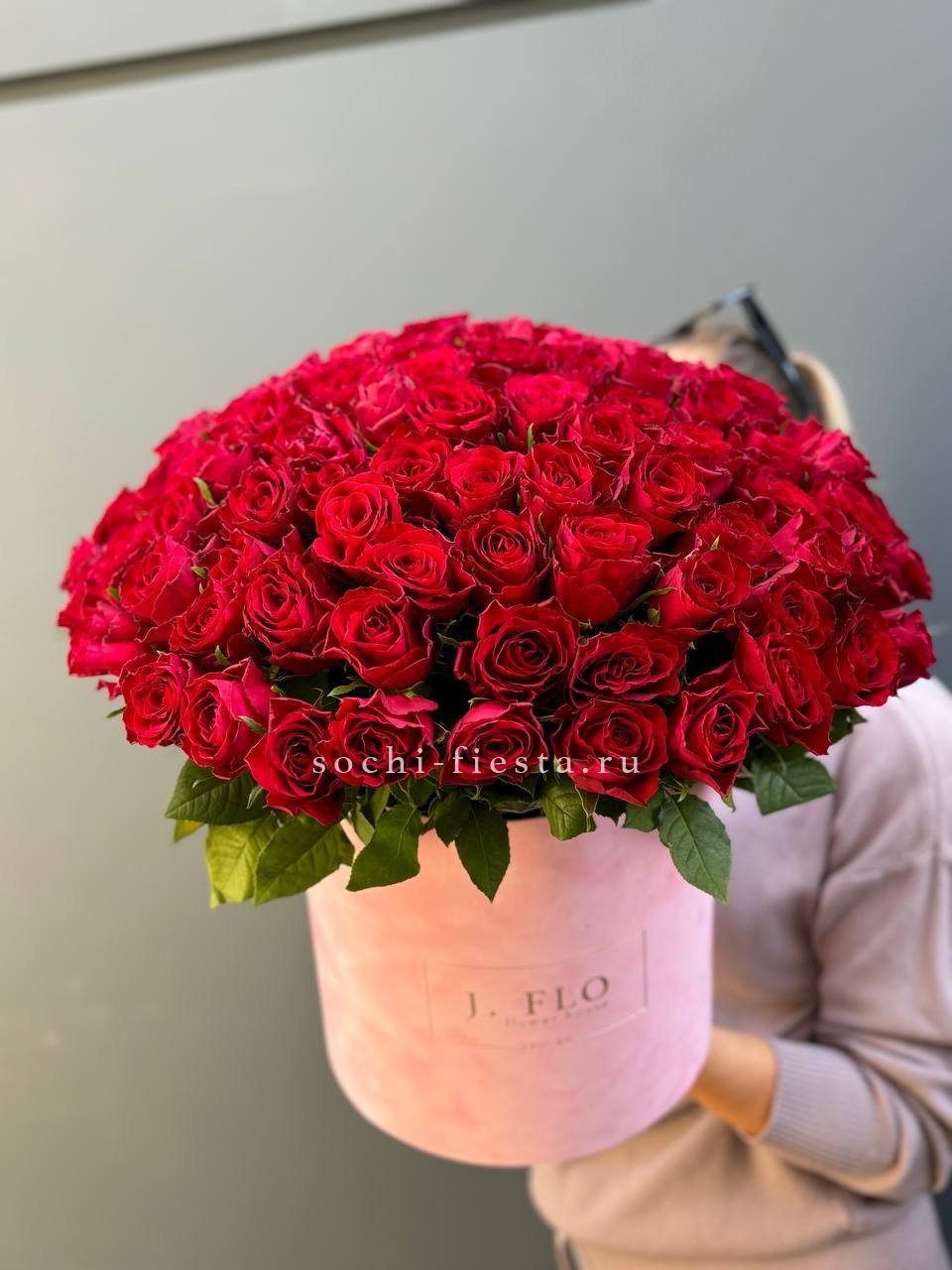 Сто одна красная роза хорошо сохраняет форму и долго радует свежестью бутонов. Плотная сборка обеспечивает аккуратный вид и удобство размещения в любом интерьере.