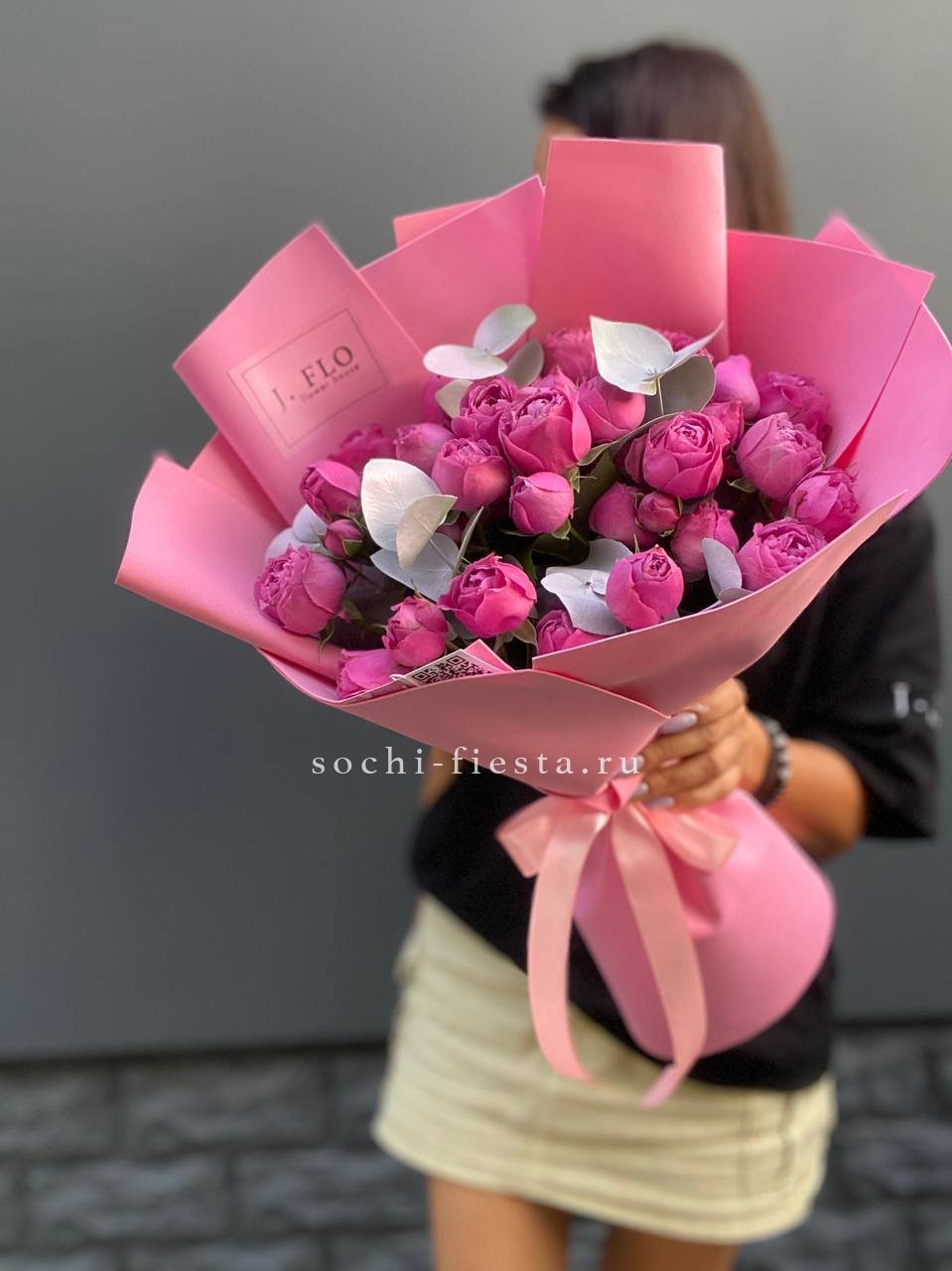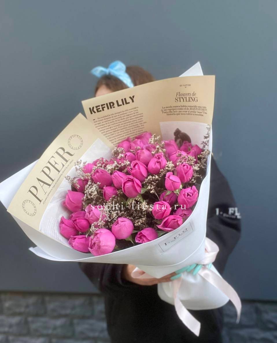 11 пионовидных роз мисти баблс, лимониум, лента, авторская упаковка.