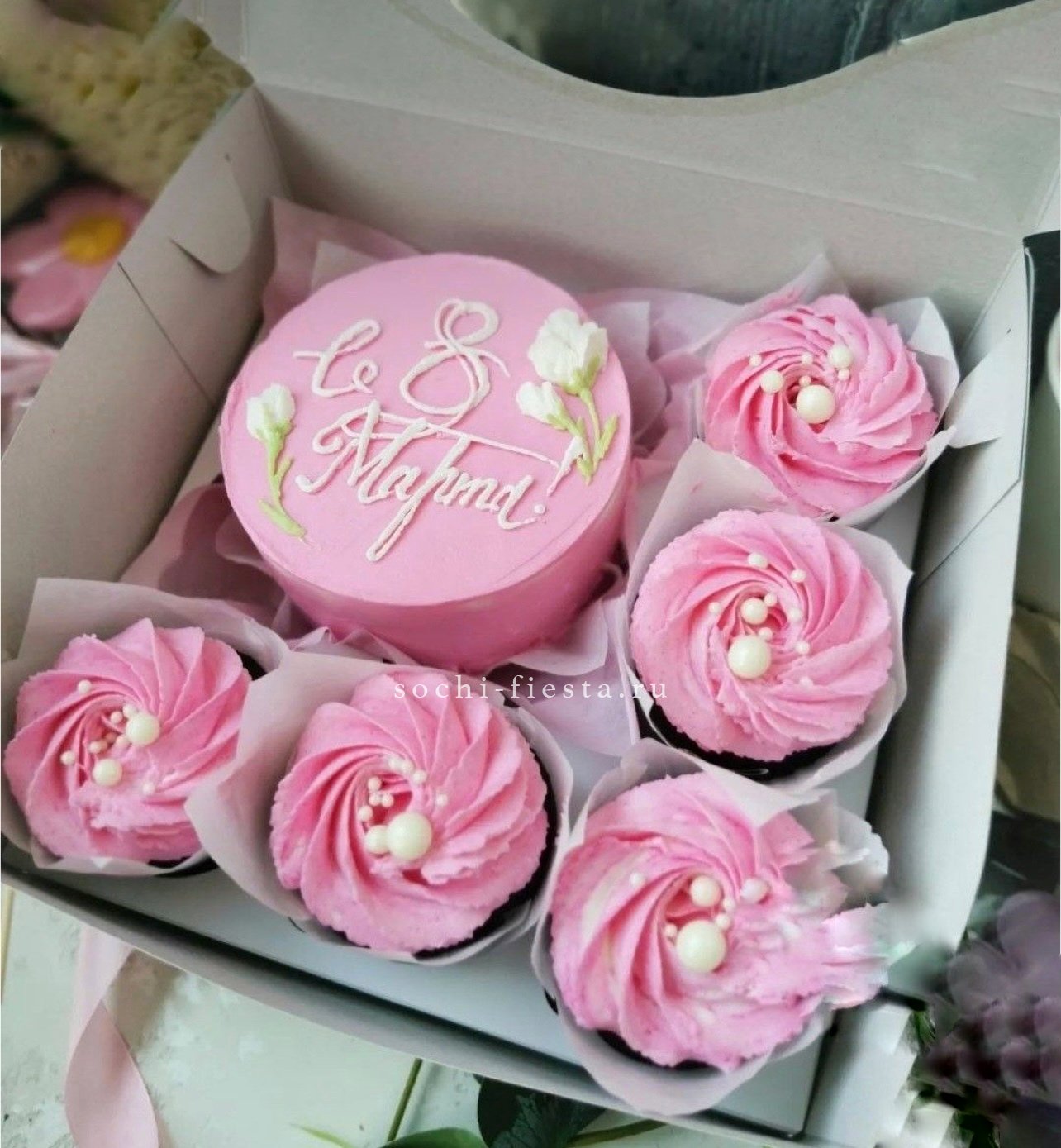 Праздничный бенто-торт ручной работы с декором в честь женского дня. Два варианта начинки на выбор позволяют угодить любому вкусу. Компактный формат и продуманное оформление делают его удобным дополнением к поздравлению.